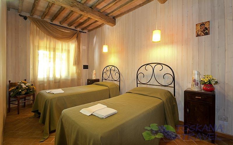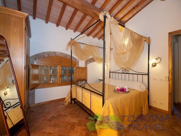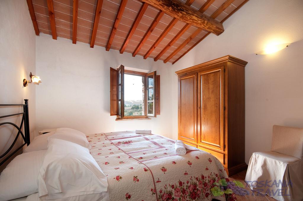 Apartament mogacy pomieścić od 4 do 6 osób znajduje się na parterze willi . Składa sie on z kuchni w pełni wyposażonej/lodówka ,zamrażarka,szkliwo, naczynia/1 duży salon,2 łazienki z prysznicem z suszarka do włosów,2 sypialnie jedna z nich z podwójnym łożkiem.Na zewnatrz apartamentu znajduje sie prywatna weranda ze stołem i krzesłami.Z apartamentu rozciaga się wspaniała panorama na wzgórza toskańskie.
