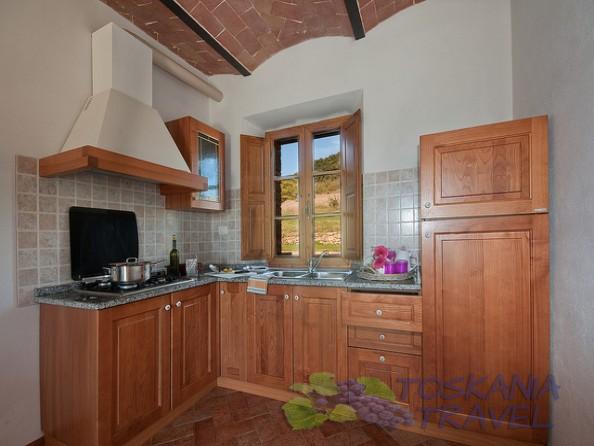 Apartament mogacy pomieścić od 2 do 4 osób składa się z kuchni w pełni wyposażonej/lodówka z zamrażarka,szkliwo,naczynia/,1 sypialnia,1 łazienka z prysznicem z suszarka do włosów.Apartament ten znajduje sie na parterze willi.Na zewnatrz apartamentu znajduje sie prywatna weranda ze stołem i krzesłami.Z apartamentu rozciaga się widok na basen i wzgórza toskańskie