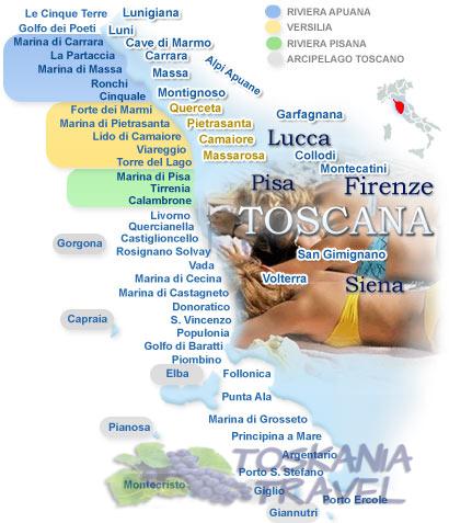 WYSPA ELBA - położona jest na Morzu Tyrreńskim, między Półwyspem Apenińskim a Korsyką, jest największą z wysp Archipelagu Toskańskiego. Wyspa Elba podzielona jest na osiem części, główną jest Portoferraio. Wybrzeże rozciąga się na 147 km różnorodnych plaż - zloty piasek, granit, skały granitowe. Elba ze względu na swoje estetyczne i piękne plaże, jest jednym z ciekawszych miejsc Włoch. Kolor morza w zależności od dna zmienia się i każdy może znaleźć swoją idealną plażę. Wyspa to nie tyko piękne plaże to również piękno kultury i sztuki.